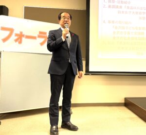 当会の渡邊副理事長の司会で進められ、冒頭、主催者を代表して当会の永下副理事長が挨拶し、このフォーラムの趣旨を述べました。
