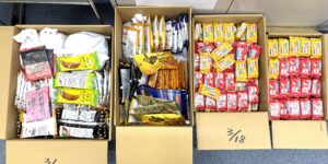 マルハン福久店様から5月・7月に続きお菓子をたくさん頂きました。