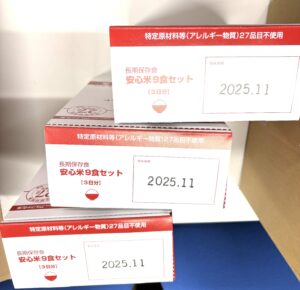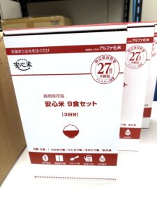 その流れを受け8月26日に中日本ハイウエイ・メンテナンス北陸株式会社様の金沢事業所様からも「アルファ米3日分9食セット」を16個頂きました。