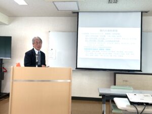 総会終了後には横山壽一理事長による記念講演「食から現代社会を考える」を実施し、現代の食料事情やフードシステムの歴史や食料危機などについて参加者全員で学習しました。