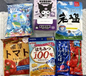 今回も数多くの種類の飴やラムネを頂きました。