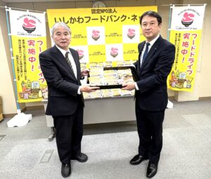 最後に「当社は地域を元気にしたい。金沢で育った当社として地元・金沢が元気になることが一番!食品を必要としている人々にお渡しして少しでも元気になって欲しい。」との真柄社長のコメントが印象的でした。真柄建設㈱様、ありがとうございました。
